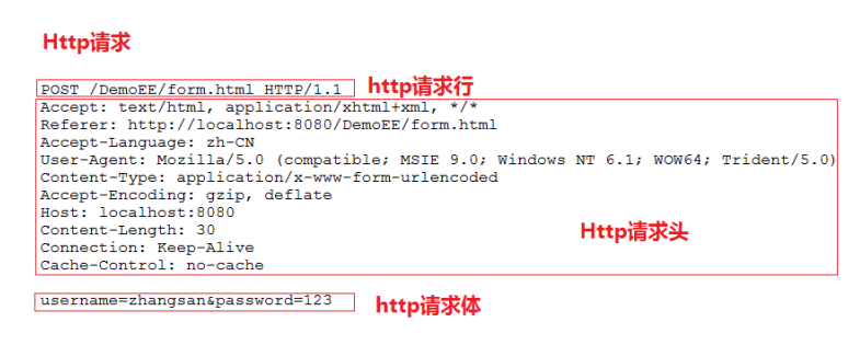 Http请求的组成有请求行,请求头,请求体三部分组成