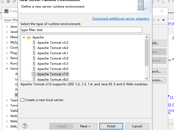 步骤1:获得服务器运行环境配置,Window/Preferences/Server/Runtime Environmen