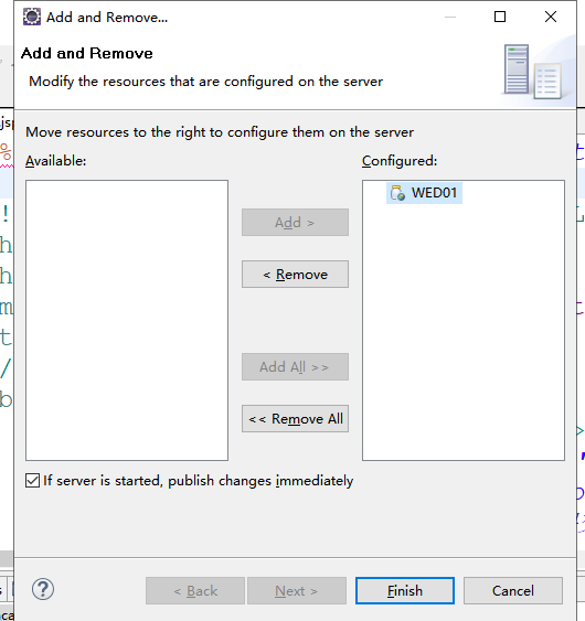 选择Available里你的项目点击add就好 设置完毕点击Finish