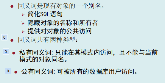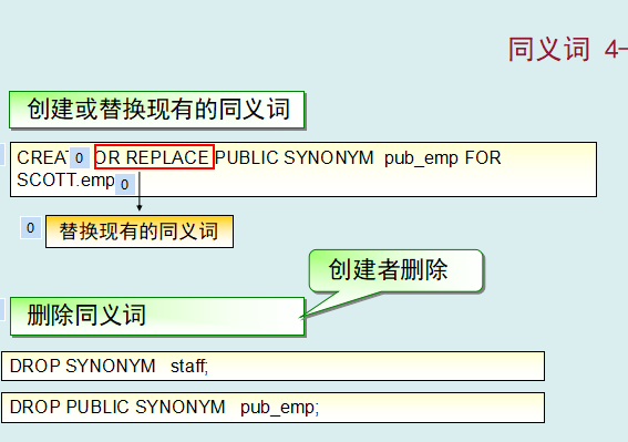 --创建共有同义词(系统管理员的身份创建)(所有用户都能访问) create public synonym mytable03 for scott.emp