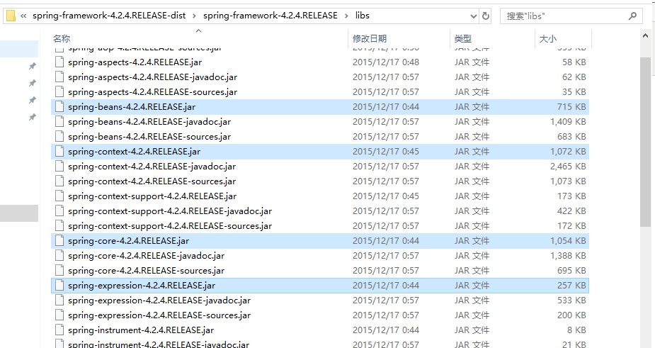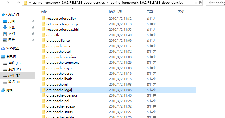 我们需要spring的jar包就从4.2.4里面找。如果我们需要别的jar包就从3.0.2里面找就好