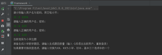 Framework类中调用各种函数实现登录,出题,提醒等各种功能