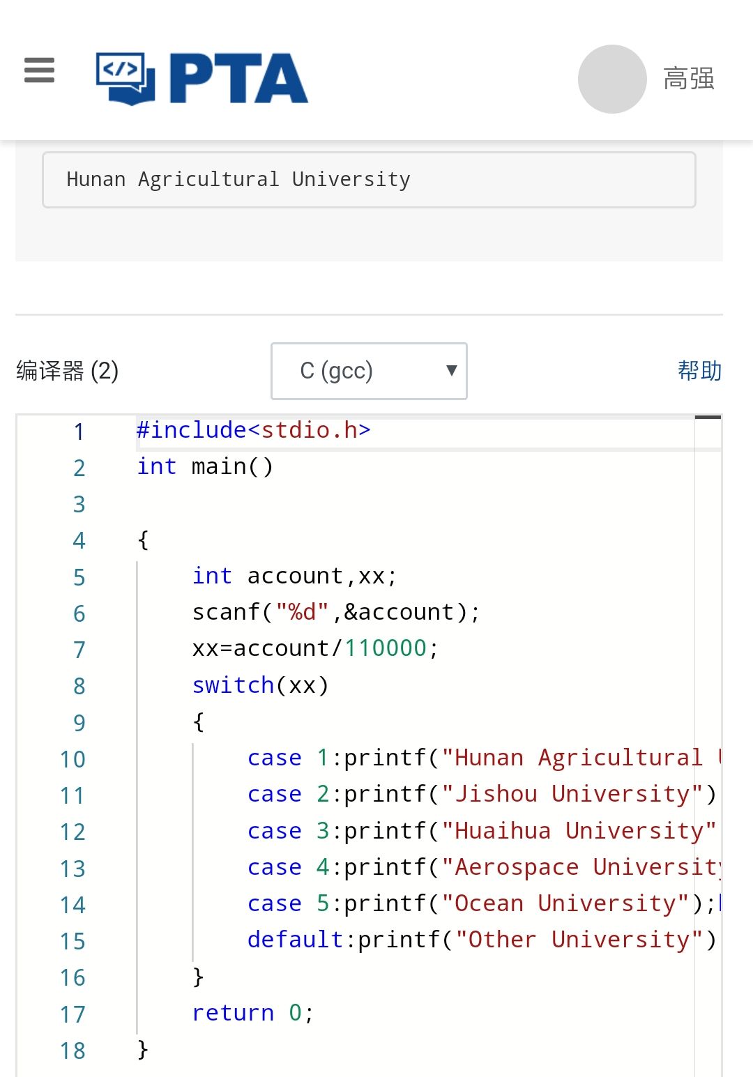 1.部分正确:输出的有一个学校英语名字母打错了,然后有个case和数字之间没打空格。