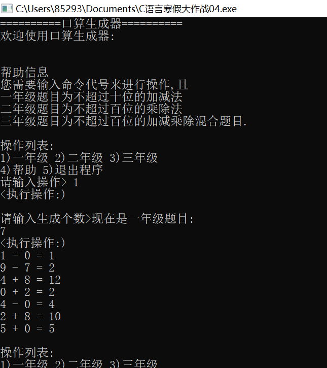 printf("欢迎使用口算生成器:\n");