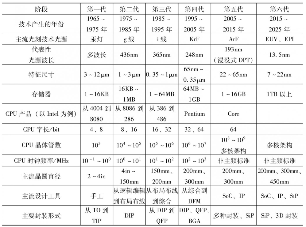 下图为半导体制造技术发展阶段图: