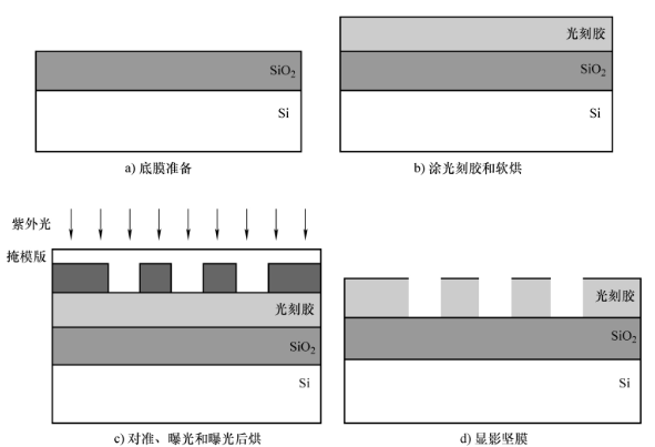 光刻工艺的基本原理是利用涂敷在衬底表面的光刻胶的光化学反应作用,记录掩模版上的电路图形,从而实现将集成电路图形从设计转印到衬底的目的。
