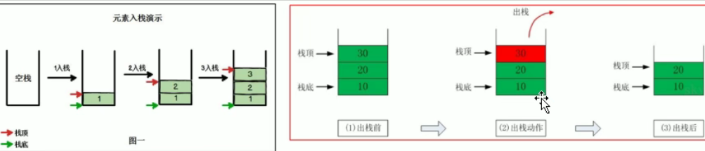 - 栈顶Top (变化的一端),栈底Bottom(固定的一端)