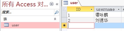 3、作为简单示例,数据库中设置一个user表,里面两个字段ID和username,均为字符。
