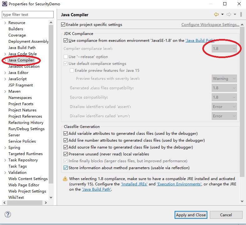 注意到这里用到了lambda表达式,因此在eclipse里须设置Java Compiler:右键选择项目,弹出菜单中选择properties,然后在下图中的对话框中选择Compiler cornpliance level为1.8以上。