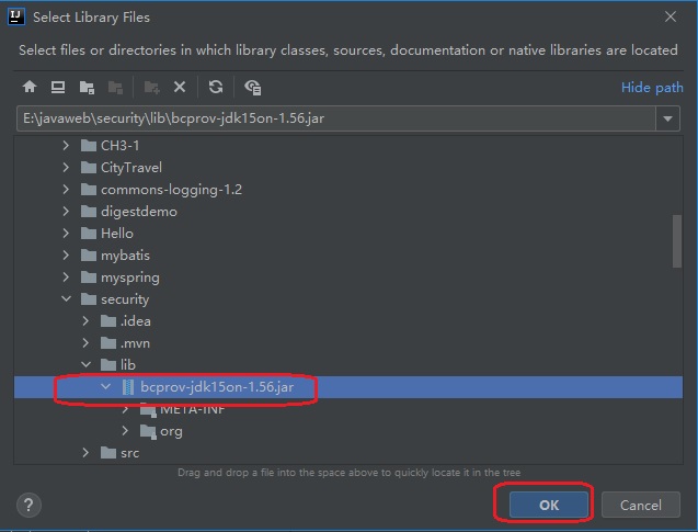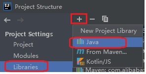 2、在Itelij IDEA的菜单File-->Project Structure,然后选择Libraries,点击+号,再选择Java,如下图,将对应的bcprov-jdk15on-1.56.jar选入。