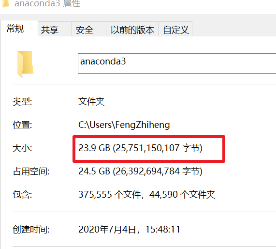 今天上午看C盘的时候,还有72G。刚刚又看了一眼,只剩62G了。明明啥都没干,没创建新的环境啊