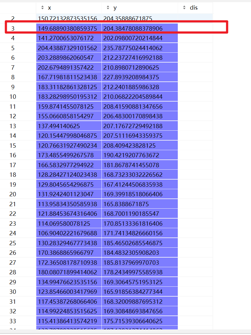 bodyPart1['dis'] = bodyPart1.apply(calDistance,axis = 1)