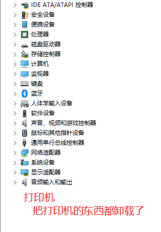 设备管理中,把打印机相关的驱动都给卸载了就可