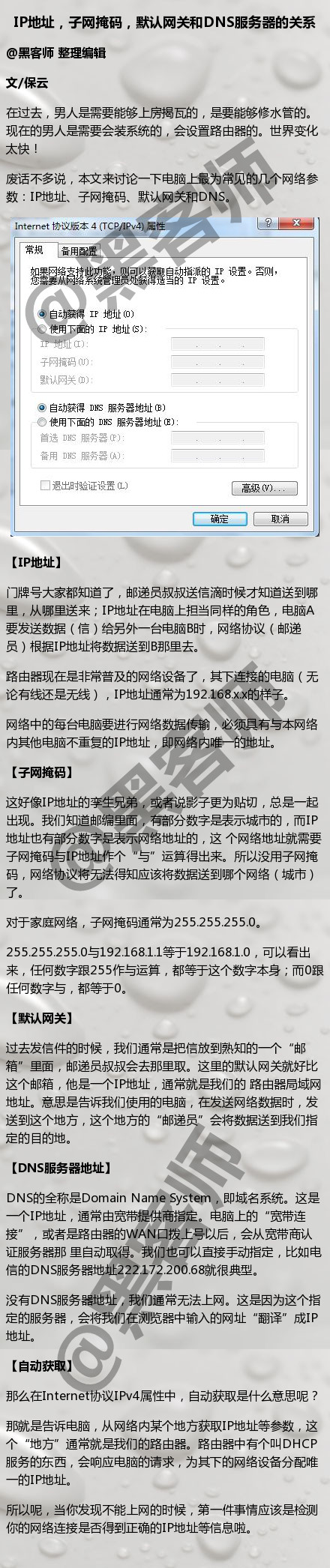 ip地址、子网掩码、默认网关和DNS服务器是什么含义