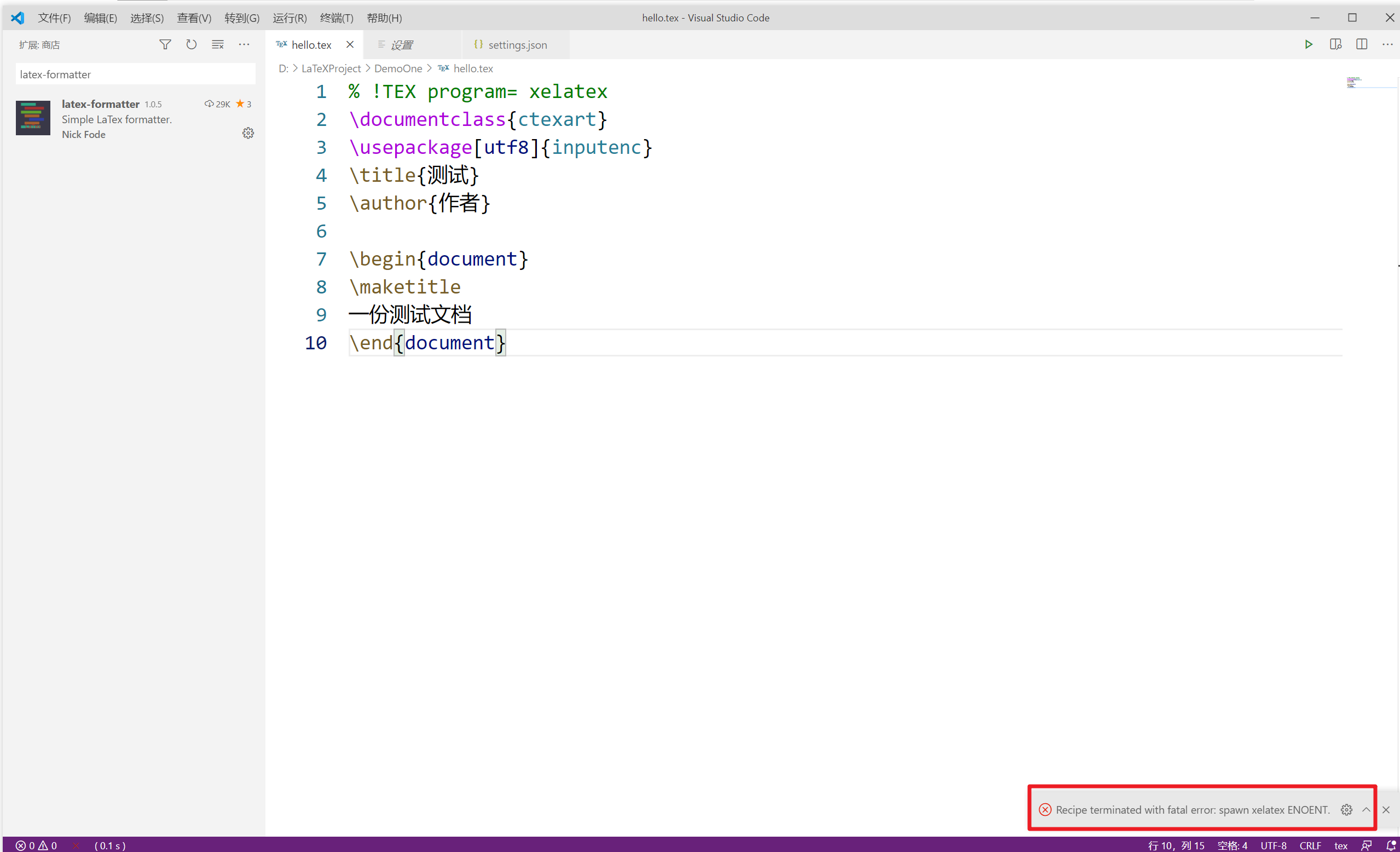 但是用tex能够编译成功,说明是vscode哪里没有配置成功
