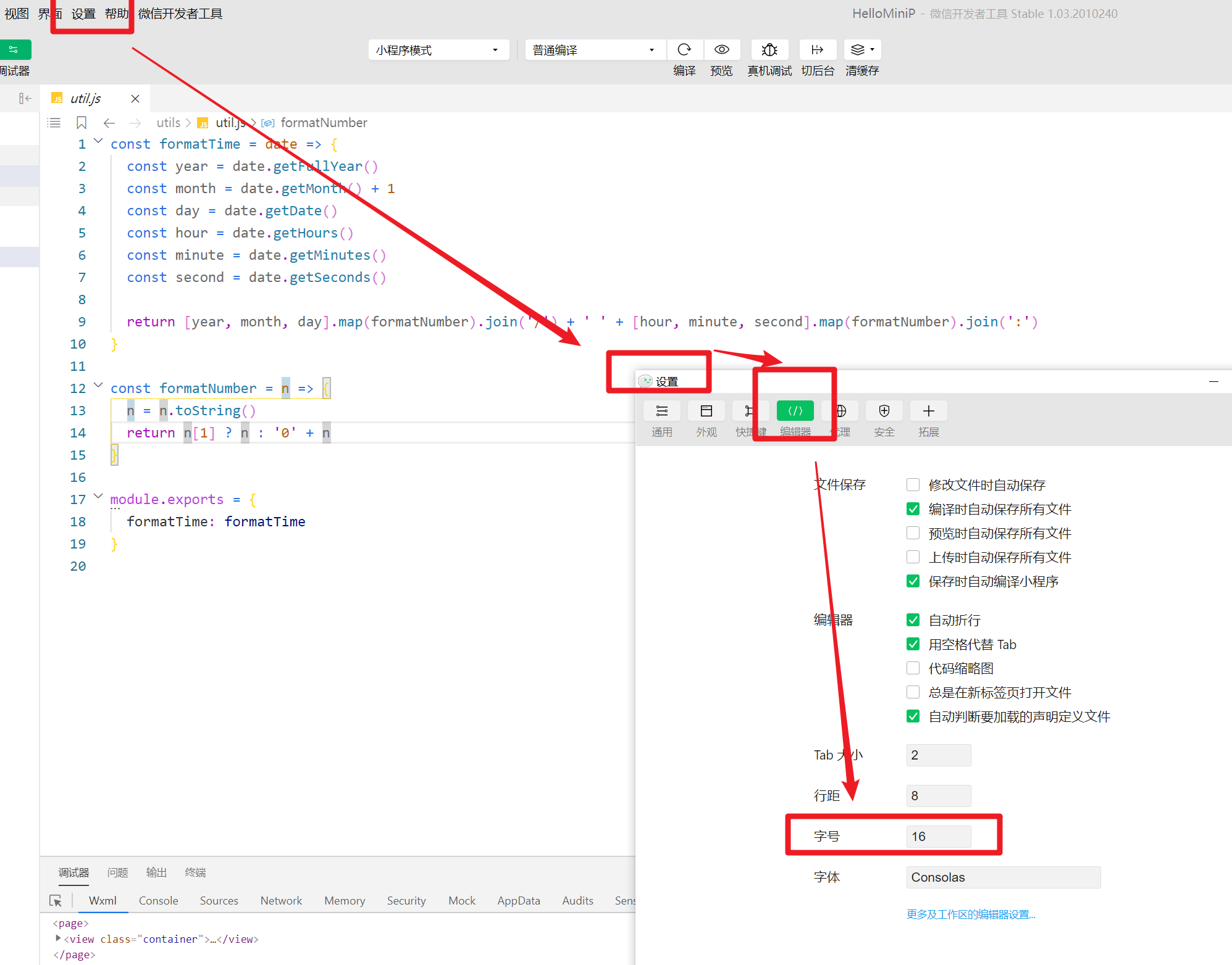微信开发工具,字体如何调整的大一点?