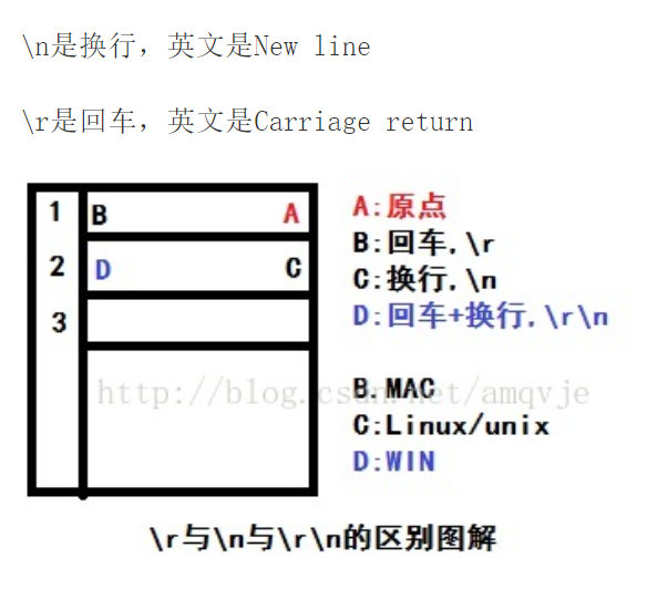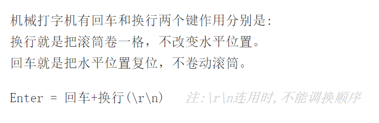 就是说,先回车(回到最初的位置\r  carriage carriage carriage return)、再换行(\n new line)