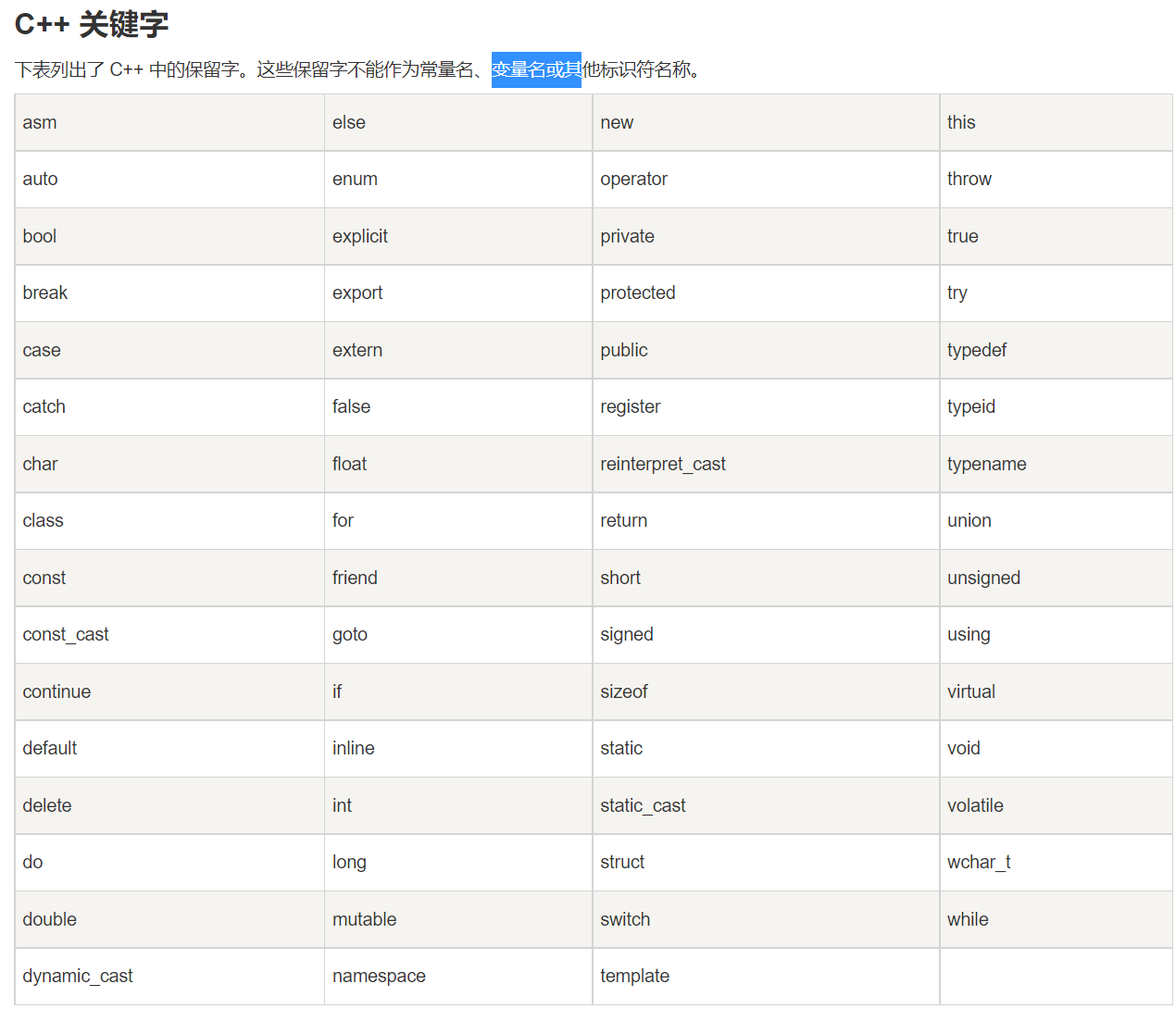 5、C++ 标识符是用来标识变量、函数、类、模块,或任何其他用户自定义项目的名称。一个标识符以字母 A-Z 或 a-z 或下划线 _ 开始,后跟零个或多个字母、下划线和数字(0-9)。