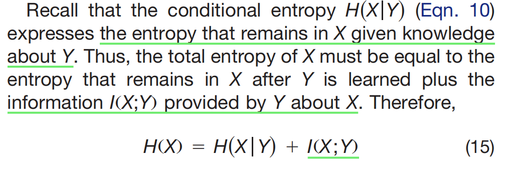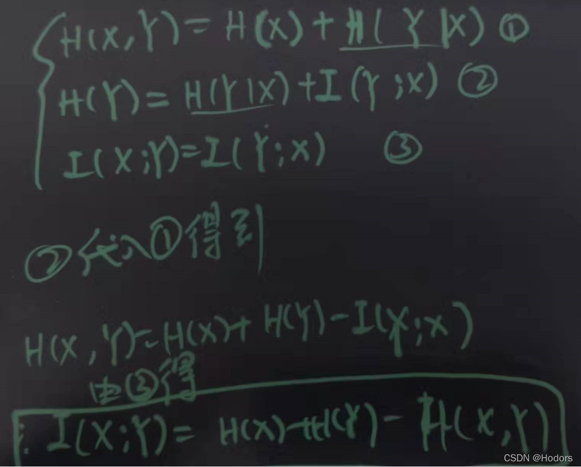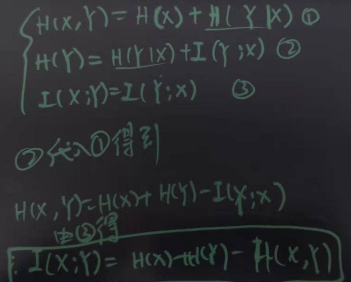 两个变量之间的不确定性,等于其中一个变量的不确定性,加上给定一个变量后,另外一个变量的不确定性。前者就是X的信息熵。后者就是已知X后,Y的条件熵。