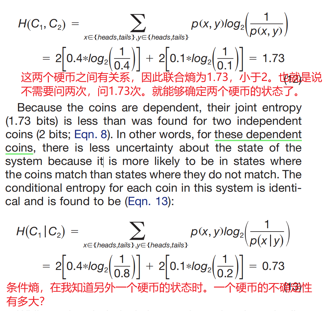 条件熵,说的是,在给定另外一个变量时,一个变量的不确定性。(不确定性直观的理解,就是,你要搞清楚这个变量的准确状态,需要问几个“是否”问题?)