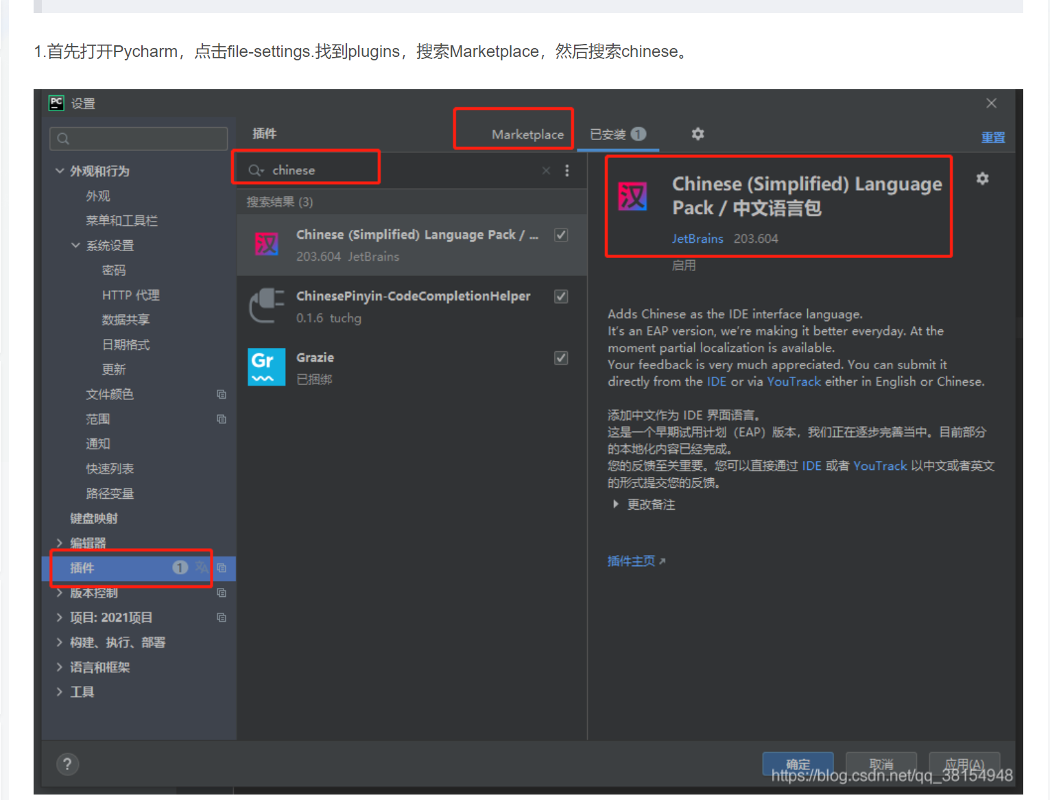 pycharm语言设置