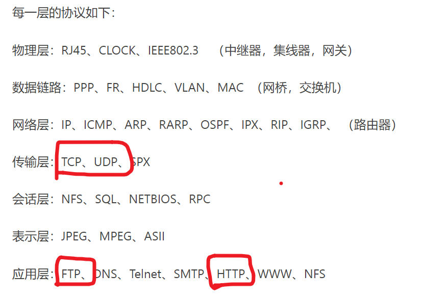 各个层上的协议有: