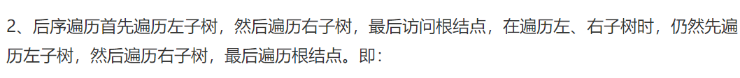 首先遍历左子树,然后遍历右子树,最后访问根结点