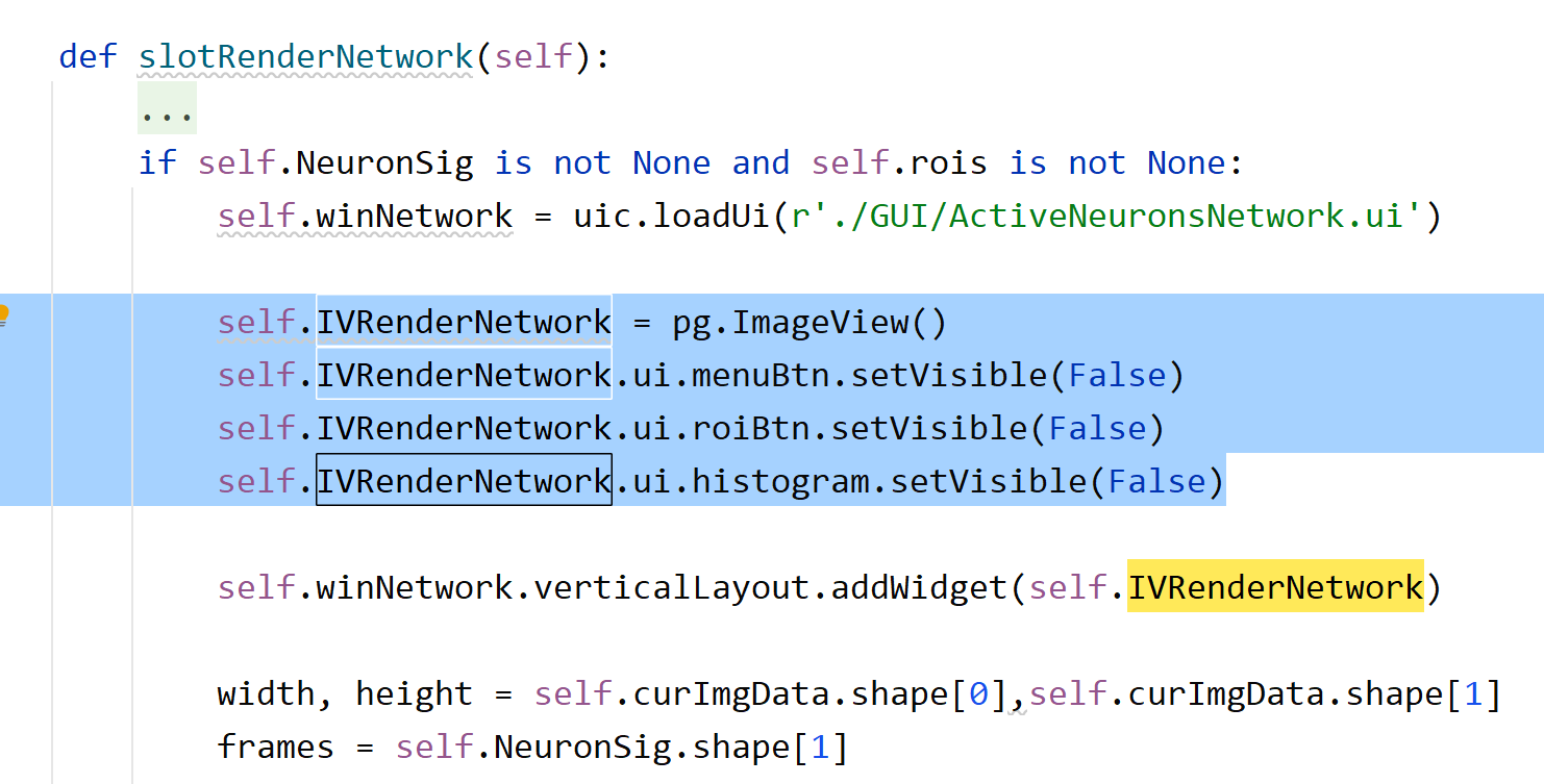 self.IVRenderNetwork = pg.ImageView() self.IVRenderNetwork.ui.menuBtn.setVisible(False) self.IVRenderNetwork.ui.roiBtn.setVisible(False) self.IVRenderNetwork.ui.histogram.setVisible(False)