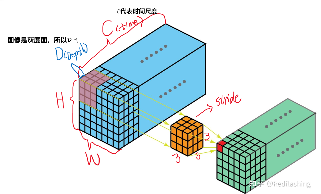 对比2D卷积和,多了D,那么D肯定代表时间啊。想什么呢。