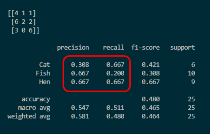 accuracy = accuracy_score(y_true, y_predict) precision = precision_score(y_true, y_predict, average='macro') recall = recall_score(y_true, y_predict, average='macro') f1 = f1_score(y_true, y_predict, average='macro')