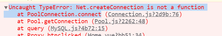 Uncaught TypeError: Net.createConnection is not a function at PoolConnection.connect