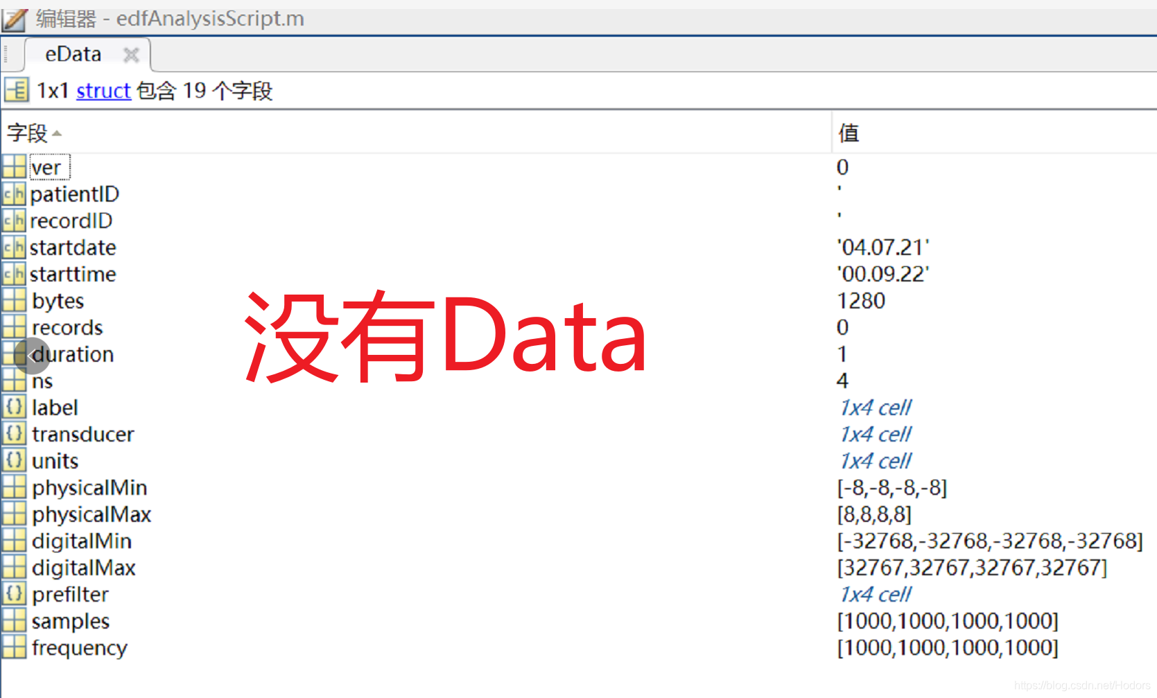 (3)使用edfreadZip(从matlab官网上下载的),软件包,打开***.edf,发现里边是空的。