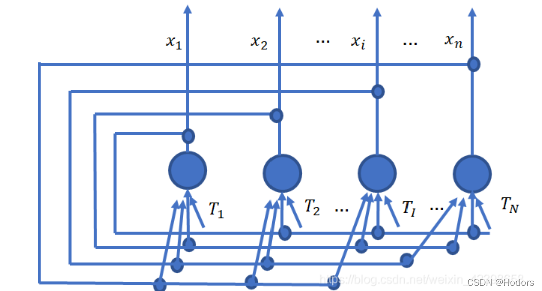 (4)Loss function是什么?(能量函数),能量函数的定义来自于 李亚诺夫函数,用来刻画整个网络的能量状态,而且是个单调函数,这也是为什么Hopfield网络容易陷入到局部极小值的原因。