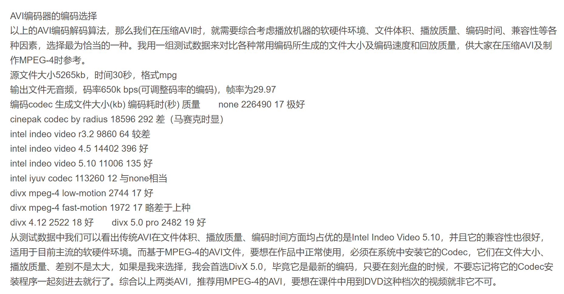 5、AVI文件的视频编解码器什么意思,以及如何选择?