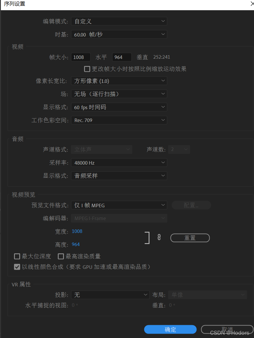 1、先看一下能被imageJ读的avi文件,加载到pr后,的序列设置: