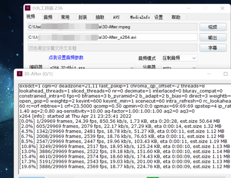 4、使用ffmpeg.exe 将mpeg文件转换为avi文件;