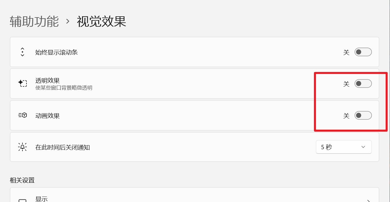 win11 关闭系统特效,动画