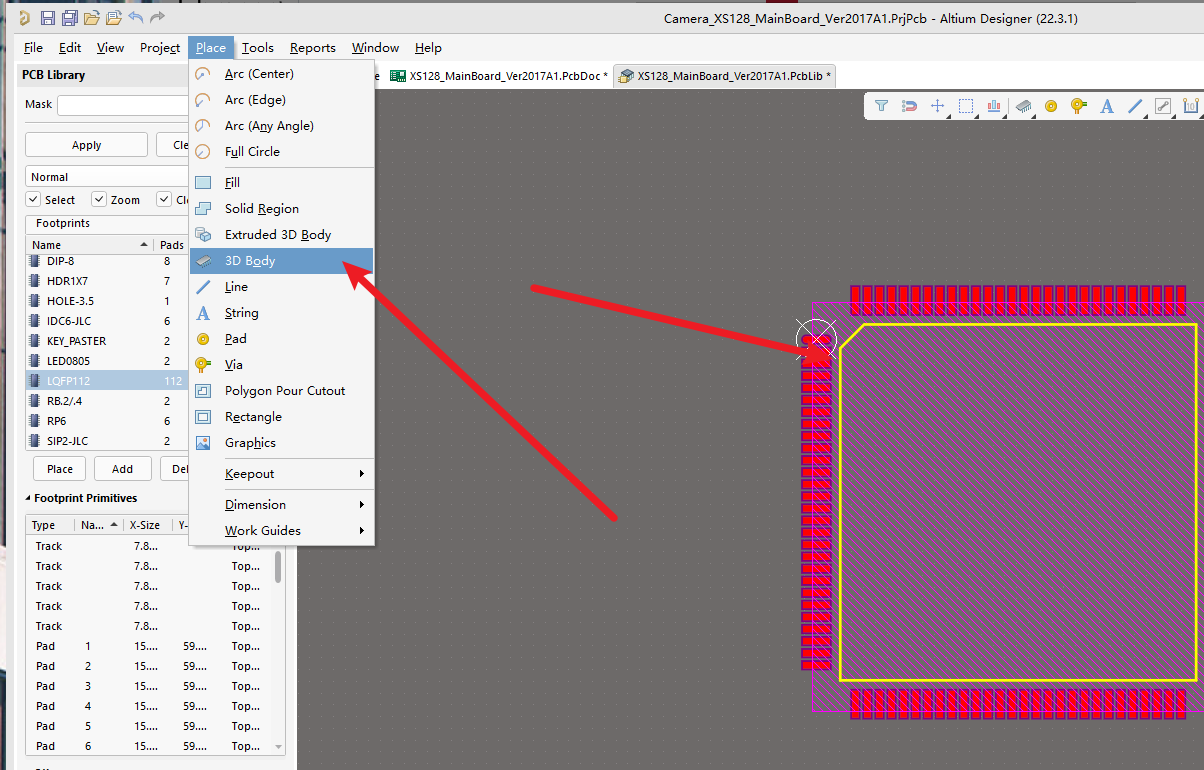 (6)更新元器件库中的3D模型:,Place 3D 到具体的元器件中;