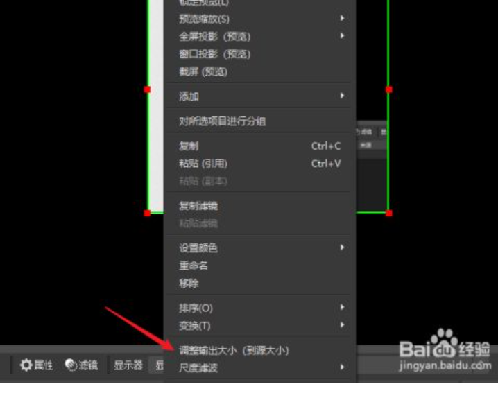 (2)右击鼠标打开菜单,选择“调整输出大小(到源大小)”