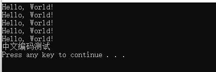 std::cout << "中文编码测试" << std::endl;