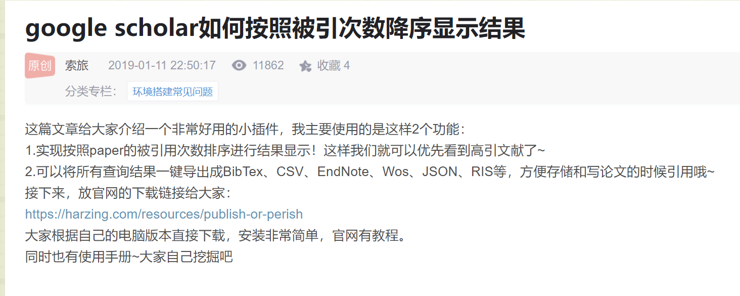google scholar按照 引用量进行排序 harzing Publish or Perish