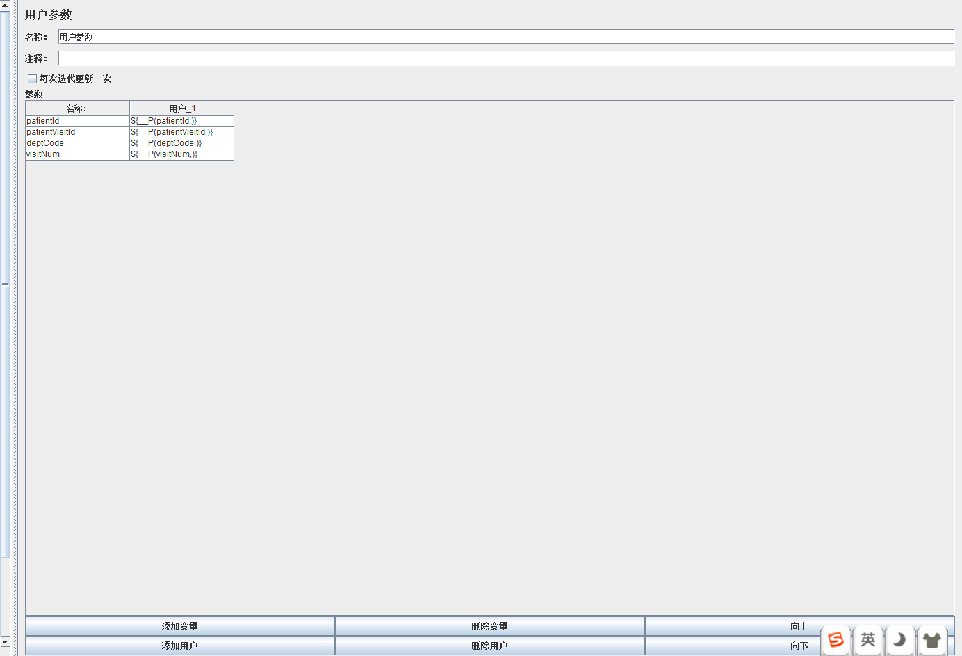 ⑥贴回第④用户变量中 ,如图: 接下来直接使用${patientId}即可
