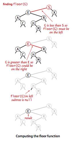 如果指定的键key小于根节点的键,那么小于等于key的最大结点肯定就在左子树中了。