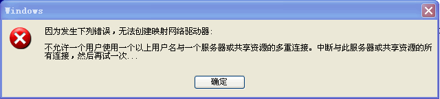 解决“不允许一个用户使用一个以上用户名与一个服务器或共享资源的多重连接”问题
