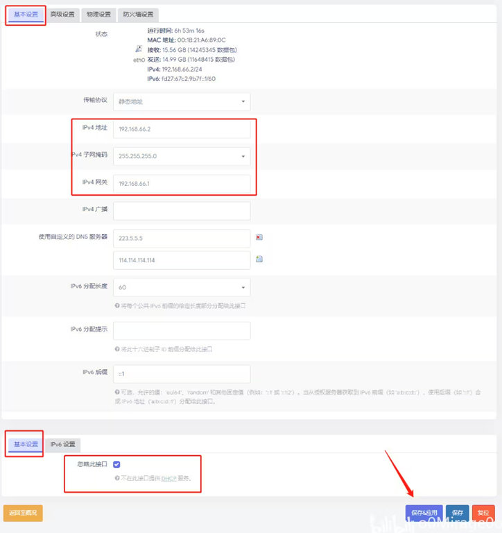 3. 主路由开DHCP(指向旁路由网关),旁路由关DHCP,旁路由只有LAN口工作,需要设置。