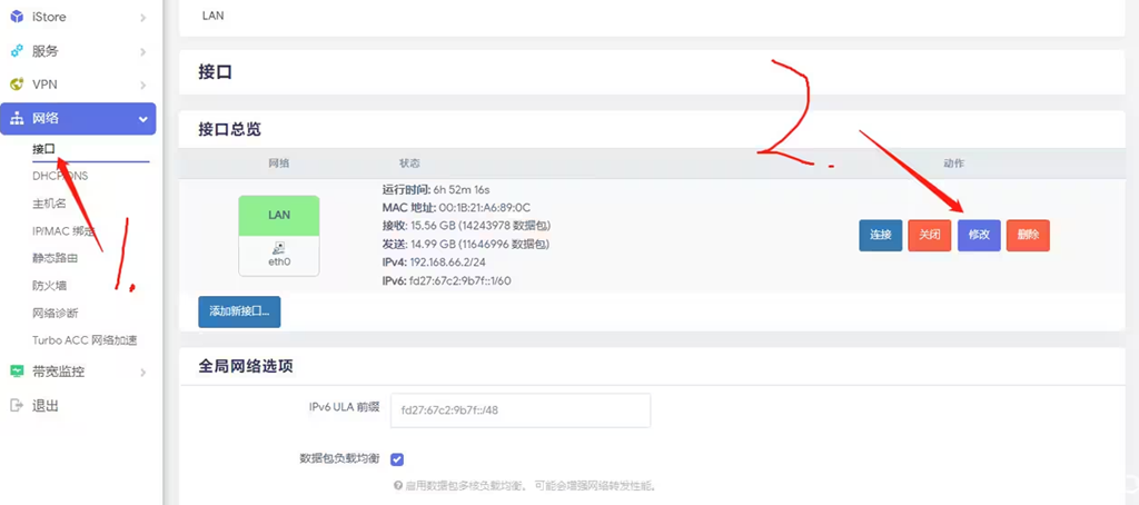方法一:只有一个LAN接口