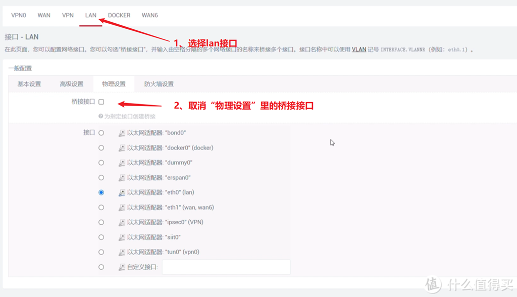 1. 旁路由WAN LAN共用eth0,不用设置。