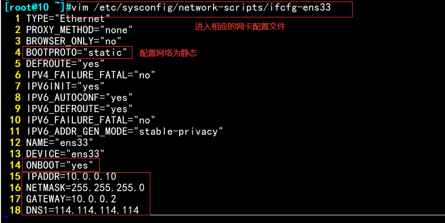Linux系统下修改网卡配置,输入如下命令进入vim下,按i键进入编辑模式下修改相关配置参数
