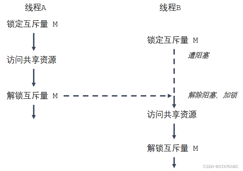 互斥量有两种状态:已锁定(locked)和未锁定(unlocked)。任何时候,至多只有一个线程可以锁定该互斥量。试图对已经锁定的某一互斥量再次加锁,将可能阻塞线程或者报错失败,具体取决于加锁时使用的方法。