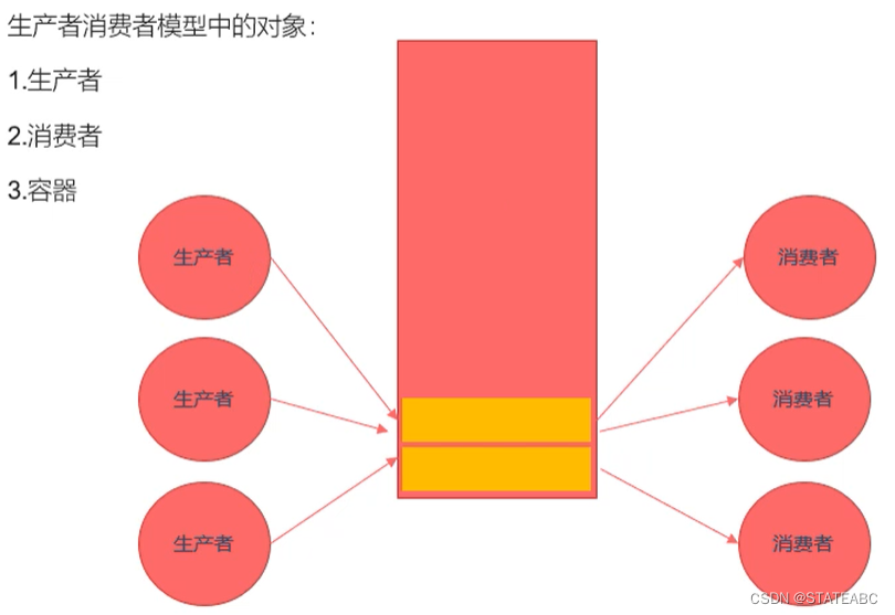生产者生产商品,将商品放入容器,消费者从容器中取商品。